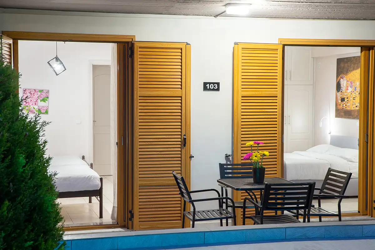 Very spacious apartments of 52m² with two separate bedrooms which sleep from 2 to 4 persons and are great for families, two couples or a group of friends. Located on the ground floor they offer gorgeous views of our garden and a sense of calmness.