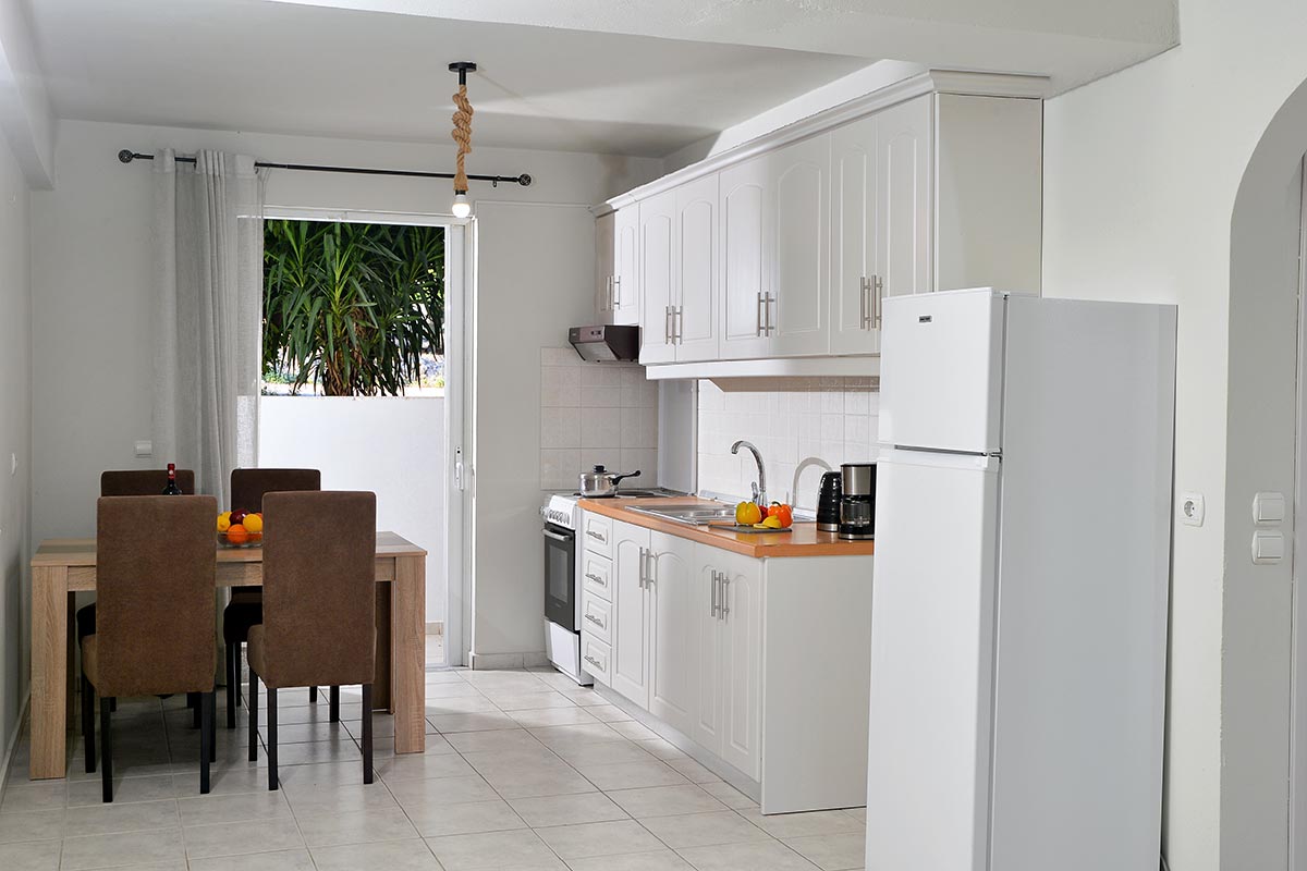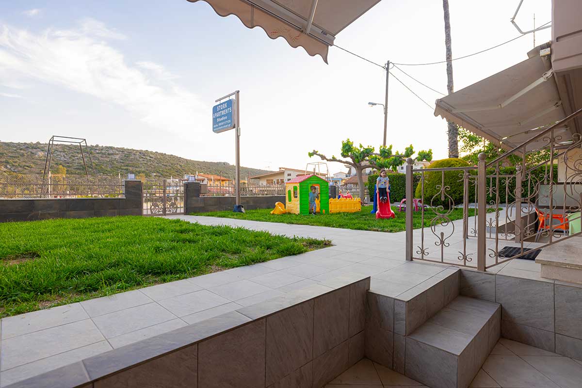 This apartment is a spacious accommodation with one separate bedroom which sleep from 2 to 4 persons. The doors in the living room open out onto a patio area and then to the garden making it perfect for families with small children that would like to be on the ground floor and have direct access to the garden.